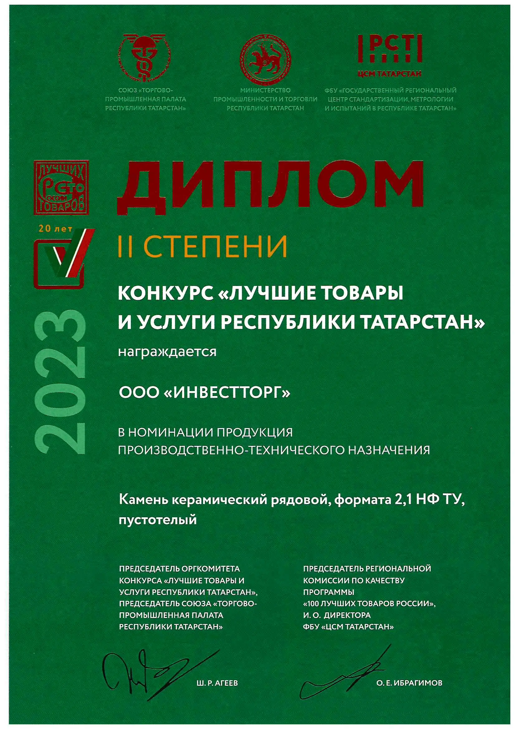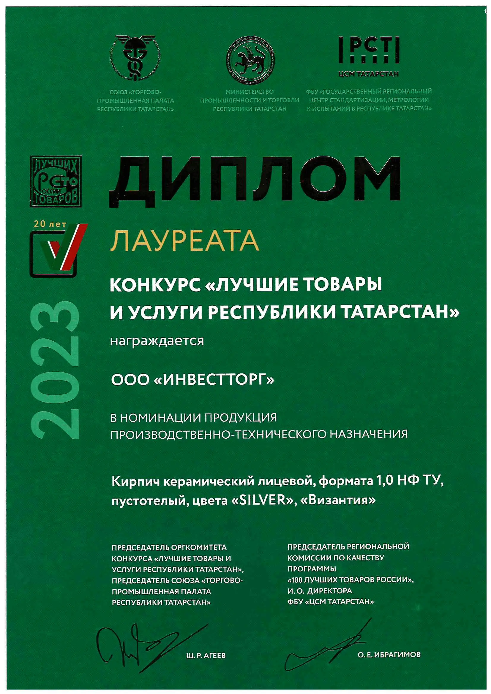 Завод "Ключищинская Керамика" получил почетные награды в конкурсе "Лучшие товары и услуги республики Татарстан". Это признание получено за высокое качество продукции и за инновационный подход к развитию бизнеса. Компания гордится этим достижением и обещает продолжать совершенствовать свои продукты и услуги.