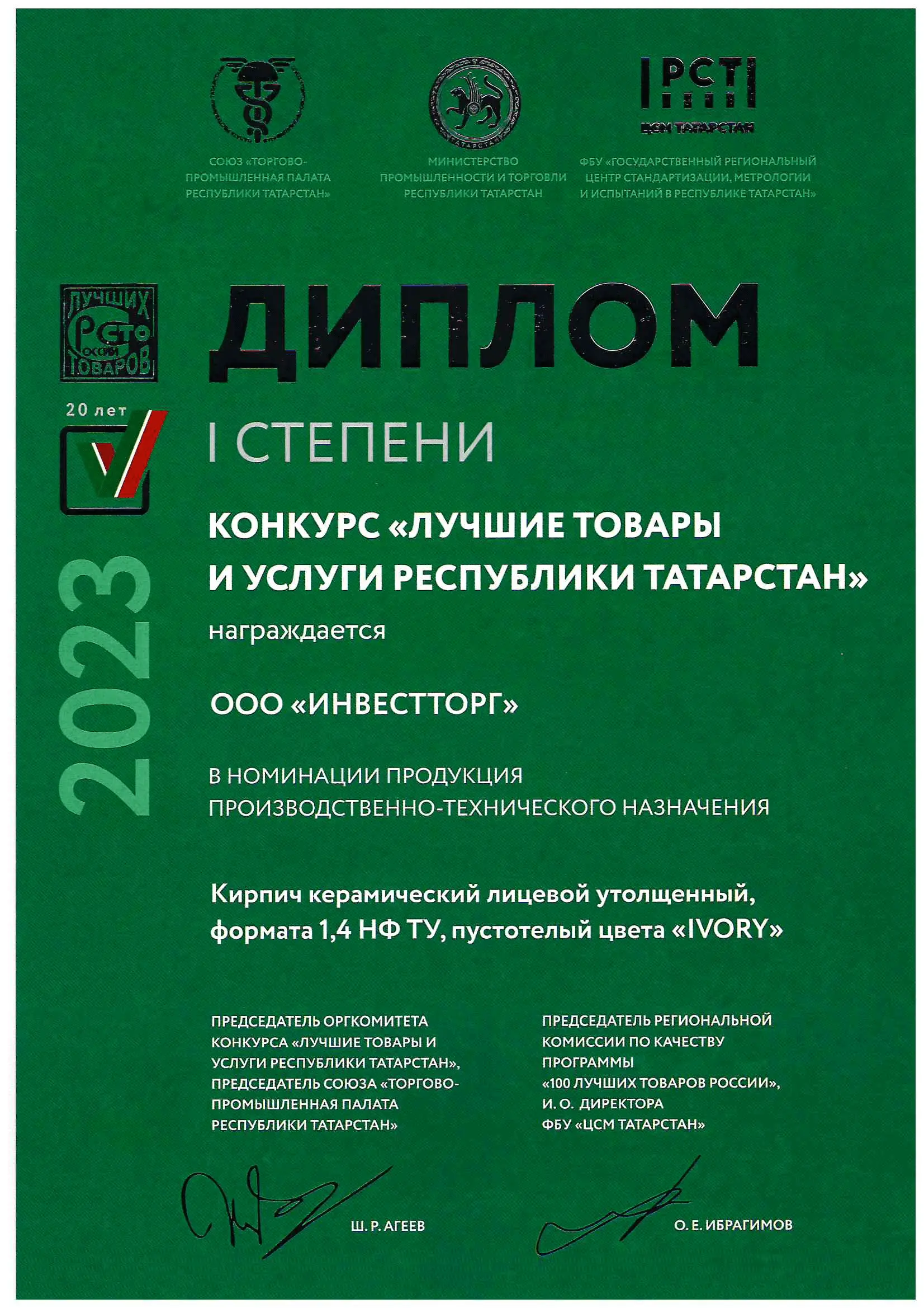 Победа в конкурсе «Лучшие товары и услуги республики Татарстан»